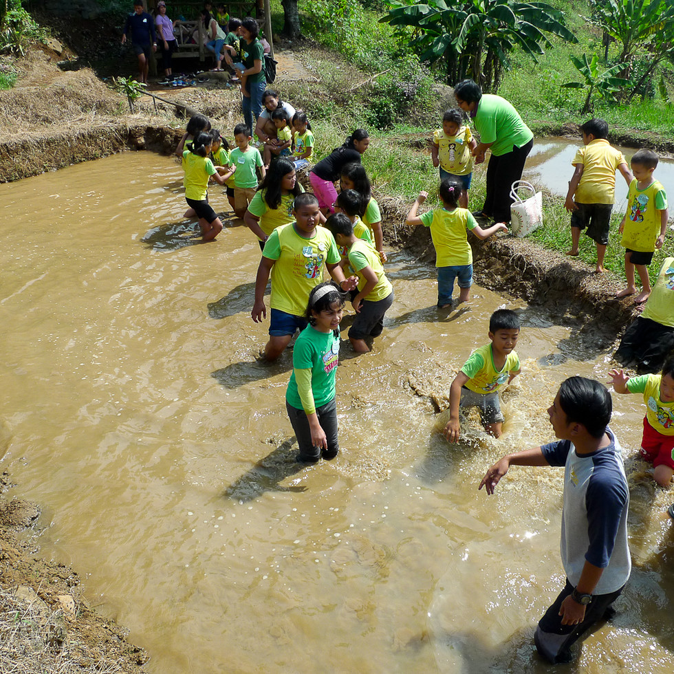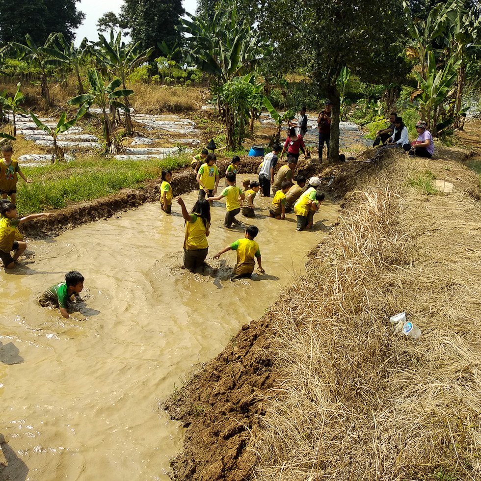 Teriakan polos kegirangan terasa indah di telinga, setelah puas menangkap ikan, kami berjalan menuju saung dengan pakaian yang sudah bertambah warna lumpur tanah disertai tubuh berbau lumpur.